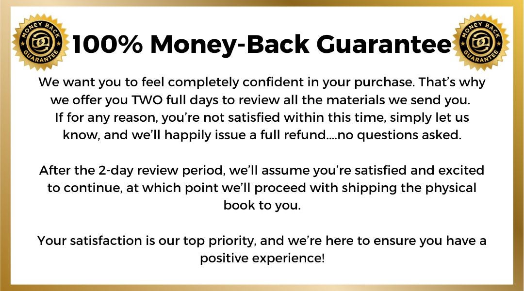 Once your purchase is confirmed, we’ll send you an email with instructions to access all the materials digitally. Be sure to check your inbox and spam folder just in case—we want you to have everything you need right away! All digital files, including the digital (iPad) version of the book and over 1,500 worksheets, will be sent directly to your email. You can print them and start working on them whenever you're ready. The physical book will be shipped 2 days after your purchase, once the money-back guarantee period ends.